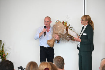 Jørgen Schou, Produktchef ved Unicon A/S, får Dansk Betonforenings "Betonpris" for at være en fantastisk ambassadør for materialet beton, for betonbranchen og for at være bindeled på tværs af generationer og på tværs af byggeriets værdikæde. Og Jørgen gør det hele med et beskedent smil, stor passion og imødekommenhed.